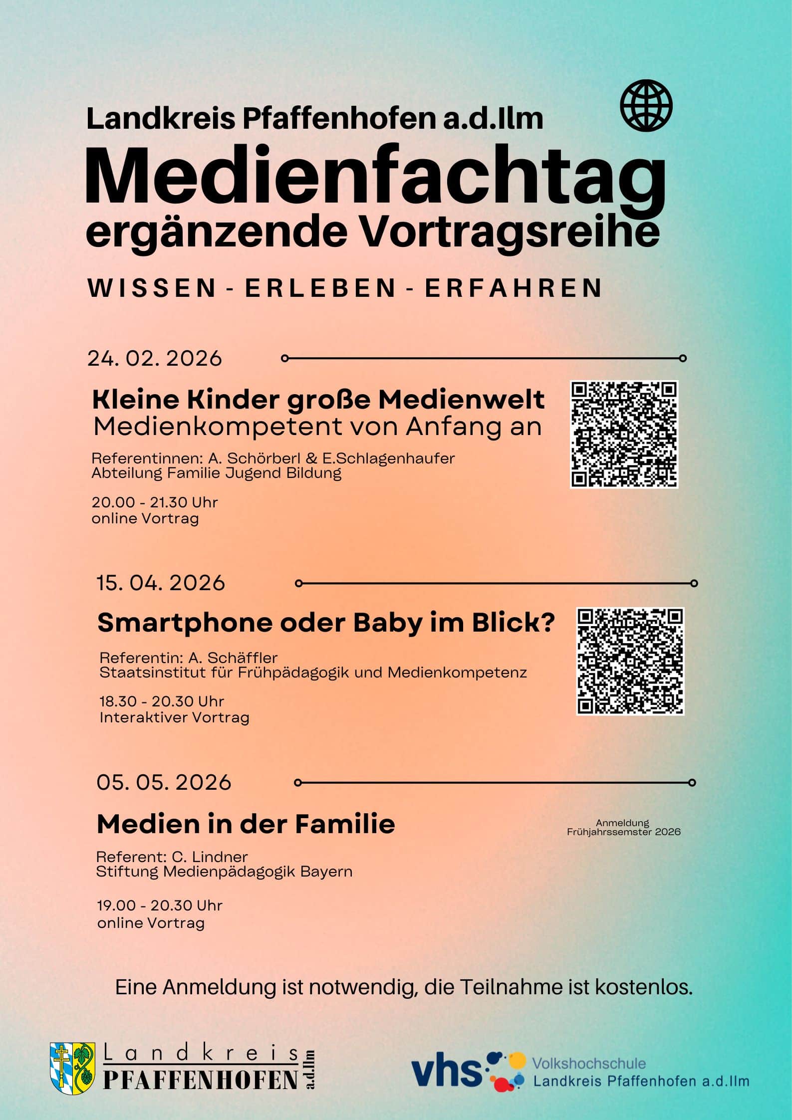 Digitale Medien sind längst Teil der Lebenswelt von Kindern – sowohl im familiären Alltag als auch in pädagogischen und schulischen Kontexten. Um Eltern, Erziehungsberechtigte und Interessierte dabei zu unterstützen, Kinder kompetent, sicher und altersgerecht im Umgang mit digitalen Medien zu begleiten, findet im Landkreis Pfaffenhofen a.d.Ilm der erste Medienfachtag statt.